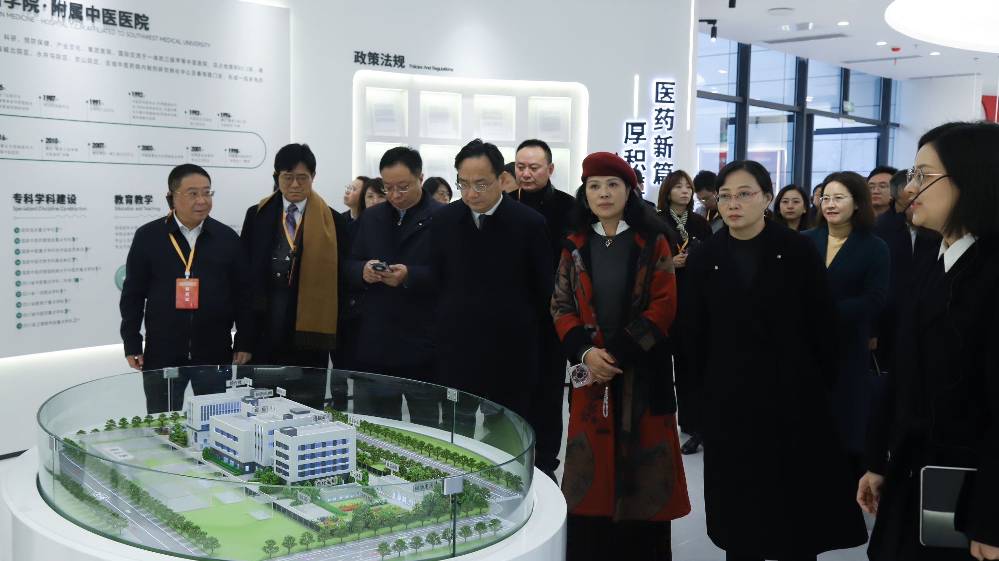 与会人员前往beat365官方网站附属中医医院区域中医药院内制剂研究转化中心参观交流。该中心为我院国家中医药传承创新中心项目,2022年4月获批,2023年10月开工建设,总占地面积23.2亩,总建筑面积1.7万余平方米,总投资超1.8亿元。该中心主要分为研究及成果孵化、转化中心和生产中心两大部分,中心配备先进的自动化生产线,构建起辐射川渝滇黔等地的“研产销”一体化的产业网络,让“名医验方”转化为“临床良药”,实现中医药制剂“研配检”三位一体创造性转化和创新性发展。