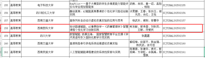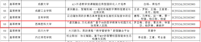 近日,四川省教育厅公布了2025年国家智慧教育平台、数字校园应用场景案例入选名单,beat365官网两个案例入选优秀案例。beat365官网《知识图谱赋能,AI情景助学—〈药事管理学〉智慧课程个性化学习创新实践》获评国家智慧教育平台应用优秀案例;《“虚实融合.文化浸润”基于VR的医学教育与校园文化协同育人实践》获评数字校园应用场景优秀案例。