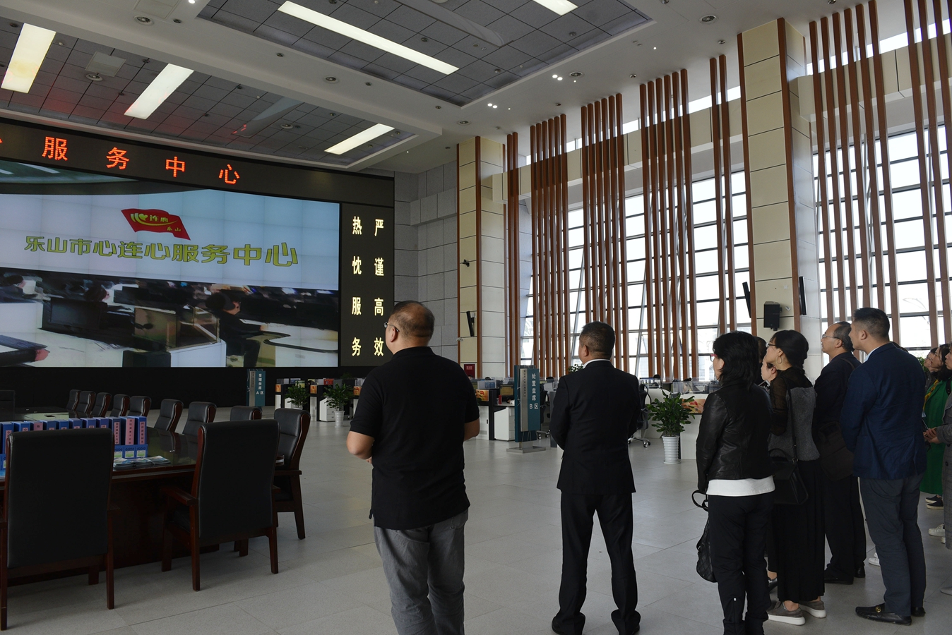 11月1日下午,考察团首先参观了乐山市心连心服务中心。工作人员介绍了心连心服务中心的建设背景和模式,以及中心如何实现全市的资源共享、数据共享、信息共享,从而成为服务民生和应急处置相结合的综合平台。随后,考察团来到乐山市高新区海棠健康城,参观了海棠医药集团公司药品自动化分拣,药材、食品生产线等。