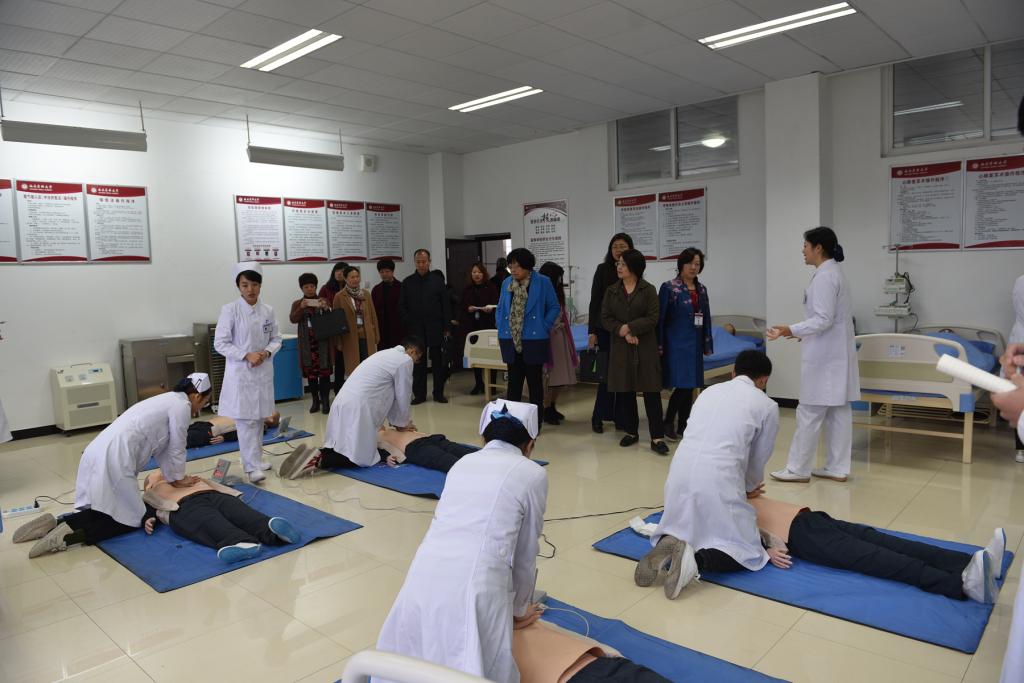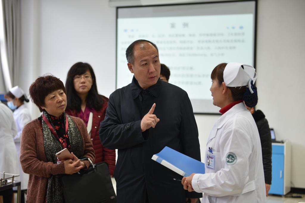 专家组还考察了护理学实验教学示范中心、虚拟仿真实验教学中心;走访了学院的临床教研室和综合教研室,与教师进行了交流,查阅了相关教学资料;走进教室,随堂听课。