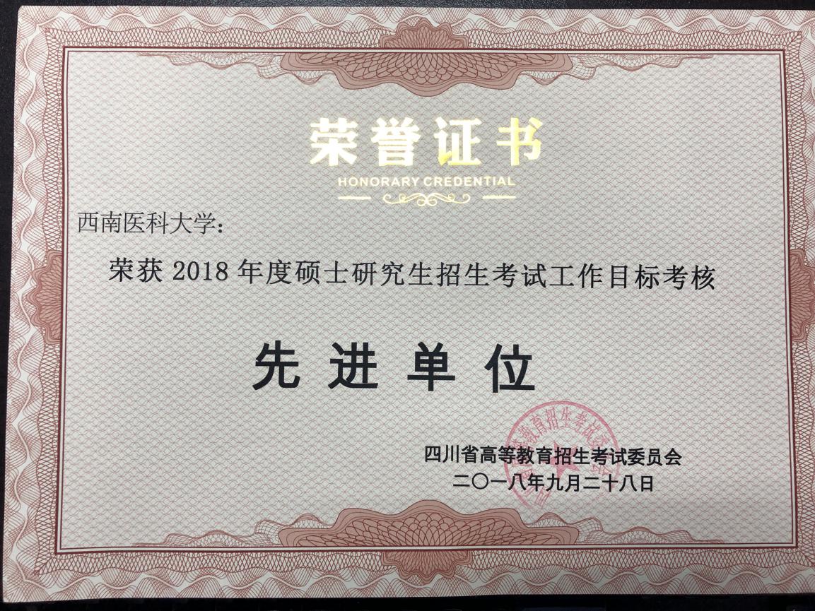 近日,四川省教育考试院组织召开四川省2019年研究生招生工作会议。beat365官网2018年硕士研究生招生考试工作被四川省高等教育招生考试委员会授予“2018年度硕士研究生招生考试工作目标考核先进单位”称号。至此,beat365官网已连续15年获得四川省研究生招生工作先进表彰。