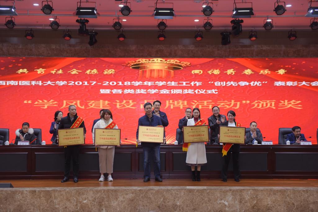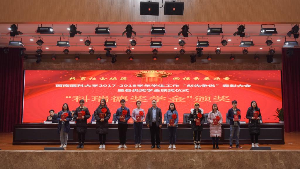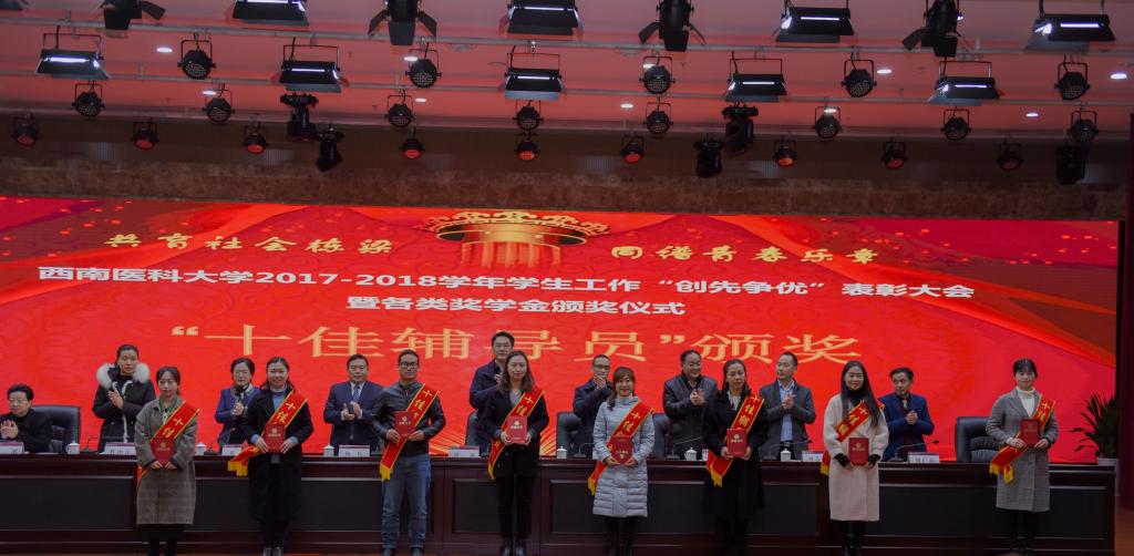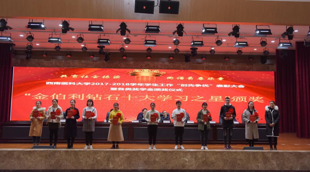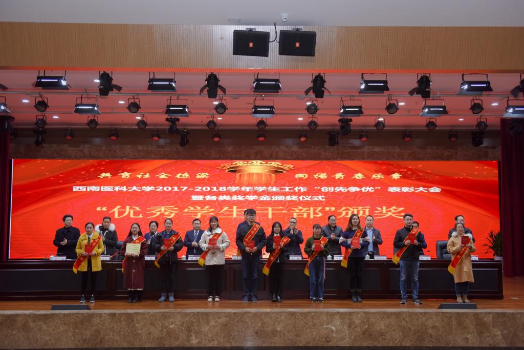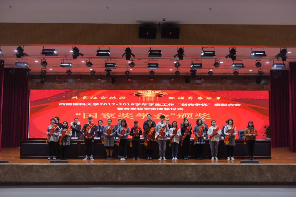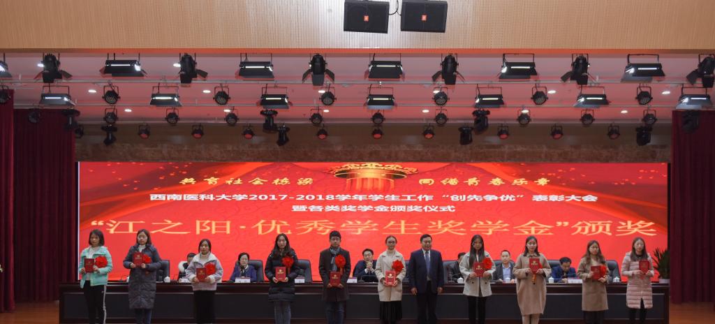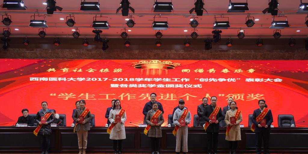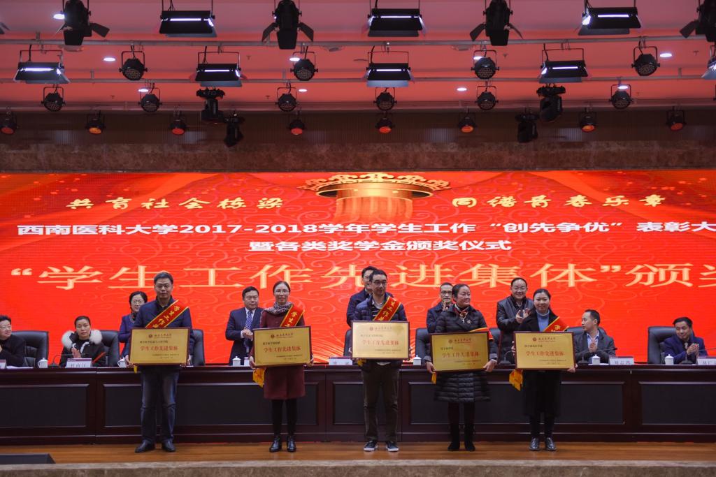 会上,学校党委常委、副校长刘广益代表学校致辞,强调学校召开本次表彰大会,旨在全面贯彻党的教育方针,坚持立德树人根本任务,着力构建全员育人、全过程育人、全方位育人的工作格局,形成有效激励机制,发挥示范引领作用,推进学生工作向更高质量更高水平发展。会议表彰了2017-2018学年度“先进班集体”“三好学生”“优秀学生干部”“三好学生标兵”,表彰了2017-2018学年度“十佳辅导员”“学生工作先进集体和个人”“学风建设活动品牌”。同时举行了2017-2018学年“国家奖学金”“国家励志奖学金”颁奖仪式,举行了泸州老窖奖学金、江之阳优秀学生奖学金、科瑞德奖学金、金伯利“十大学习之星”等社会类奖学金颁奖仪式。会上,先进个人学生代表麻醉系2015级1班学生廖宏森、先进个人教师代表临床医学院2015级二办辅导员曹姣、先进集体代表2017级中西医临床医学6班学生汪茂雯分别发言。