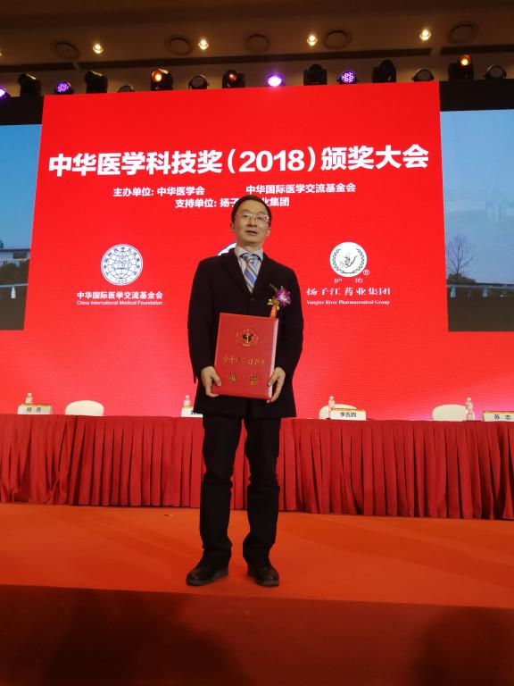1月11日,中华医学科技奖2018年度颁奖大会在北京举行。beat365官网附属医院核医学科陈跃教授团队申报的“核素诊疗自主创新与临床应用”项目荣获2018年度中华医学科技奖三等奖。