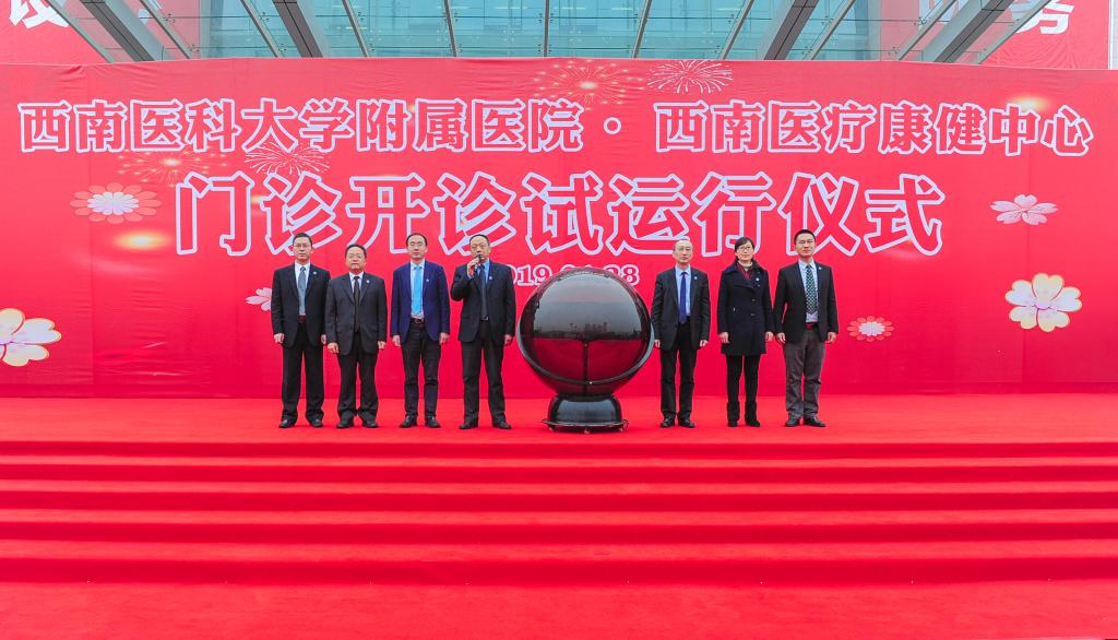 1月28日上午,beat365官方网站附属医院·西南医疗康健中心门诊开诊试运行仪式在附属医院新院区门诊前区广场举行,附属医院全体院领导,临床医技科室主任、护士长代表,职能科室负责人代表参加仪式。