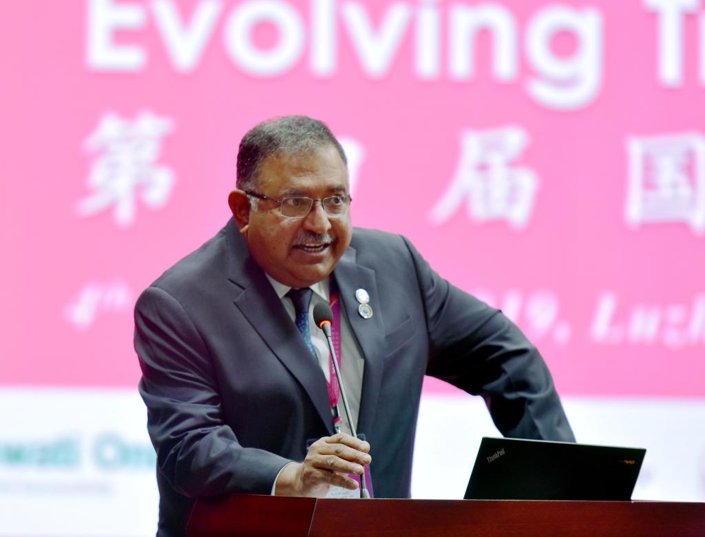 萨拉斯瓦提国际教育机构首席导师甘古力博士致辞。他表示此次会议将促进合作学校间的交流,加深彼此间的了解,规范MBBS的培养方案,探讨提高课堂教学质量和执业医师资格考试通过率的方式和方法,将会给在座的专家学者、领导、管理人员和教师带来更精彩的学术火花和思想碰撞。