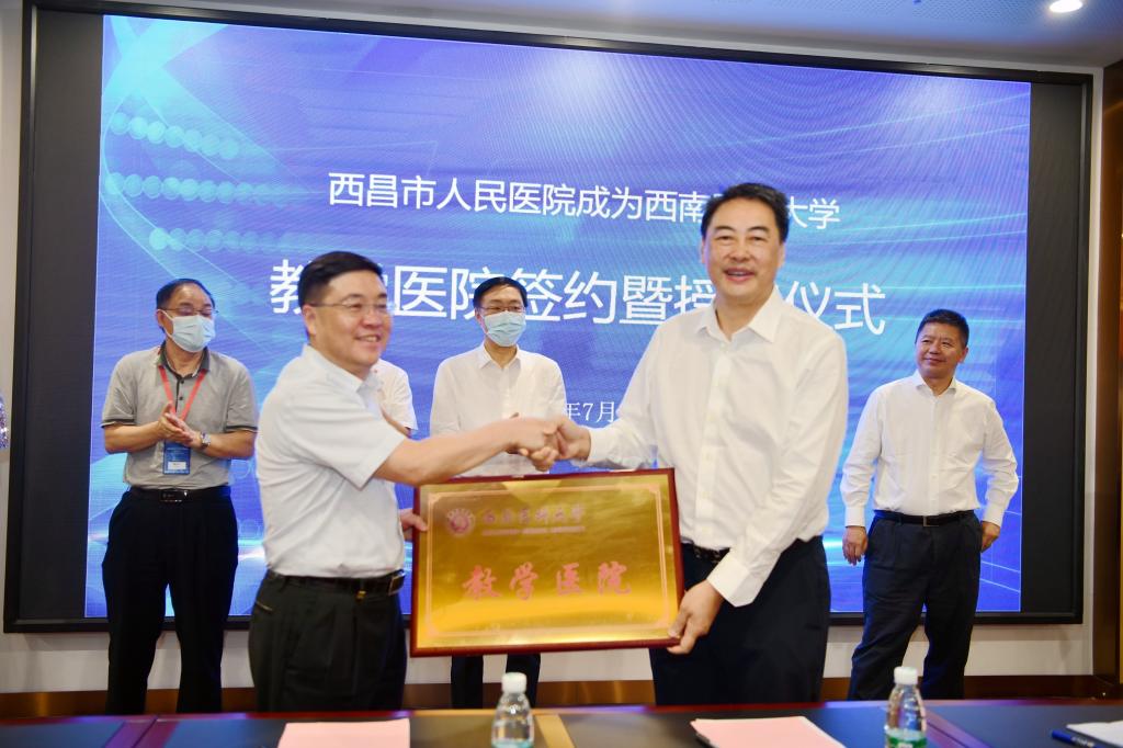 肖春致辞。他表示,西昌市人民医院成为beat365官方网站教学医院,是西昌市人民医院的一件大事,也是凉山州医疗卫生事业发展的一件幸事。今后凉山州与beat365官方网站的全面合作进入崭新的阶段,达到全新的高度,双方通过校院携手,将医疗教学与临床实践紧密结合,实现资源共享、优势互补和协同发展。
