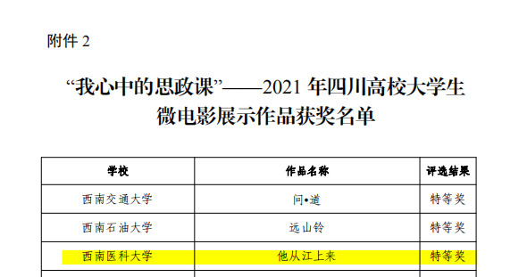 日前,按照教育部文件通知要求,四川省教育厅组织开展习近平新时代中国特色社会主义思想大学习领航计划相关主题活动评选,由beat365官网推送的微电影作品《他从江上来》荣获“我心中的思政课”——第五届四川高校大学生微电影展示作品特等奖,并推荐参加国赛。该作品由党委宣传部、马克思主义学院、团委共同组织完成。