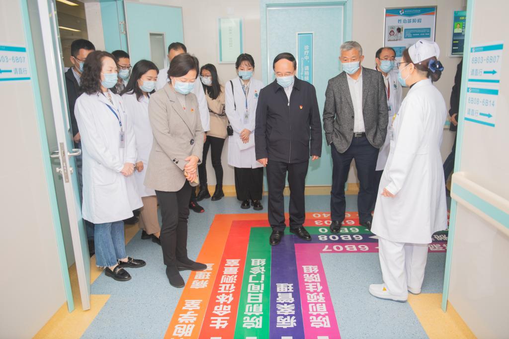 1026日上午,党史学习教育省委第三巡回指导组组长徐立、副组长陈建等一行莅临学校和临床医学院•附属医院康健中心院区指导工作,通过观看展板、听取汇报、实地调研等方式,全面了解学校和附属医院党史学习教育开展情况,重点了解学校党史学习教育融入教育教学和附属医院“我为群众办实事”实践活动落实情况。