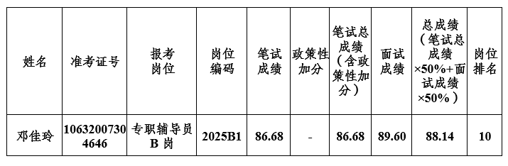 beat365官方网站2025年11月公开招聘专职辅导员递补进入体检环节名单公告