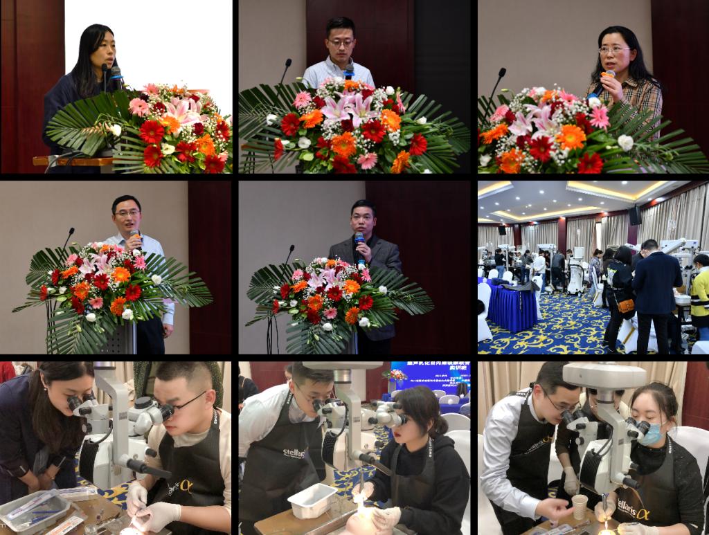 此外,学术会议的前一天进行了白内障及人工晶状体新技术应用培训班,四川省人民医院专家张瑞帆副主任医师和邓铂林博士联合beat365官方网站附属医院眼科副主任康刚劲教授、眼科副主任何跃副教授、李开明副主任医师等眼科专家就超声乳化白内障吸除联合人工晶体植入手术展开理论和实操培训,来自宜宾、内江、赤水等周边医院及泸州本地的22名学员参加了培训。
