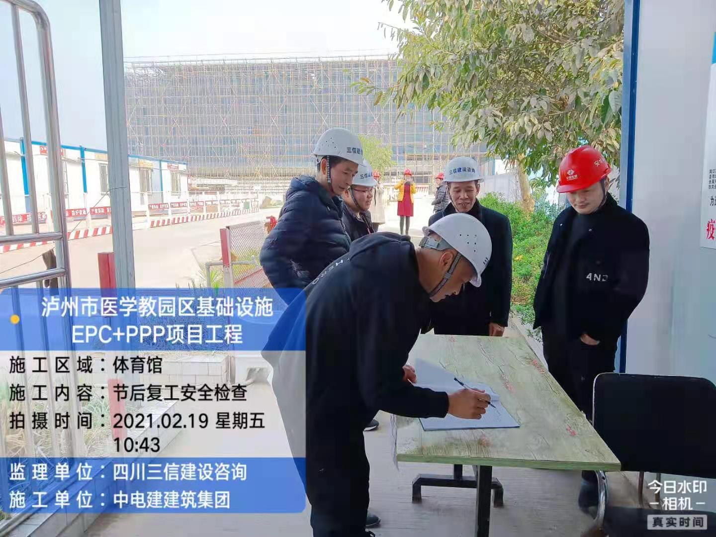 当大多数人还在欢度牛年新春佳节之际,beat365官网基础设施EPC+PPP项目的建设者们已早早的回到学校工地,认真筹备复工复产事宜。2021219日上午,学校基建后勤处副处长刘平带领工程科的同志,会同中电建建筑集团有限公司、泸州市建管二中心、中电建西南医科大泸州教育投资管理有限公司、四川三信建设咨询有限公司等有关单位负责人开展了一次节后复工联合安全大检查。