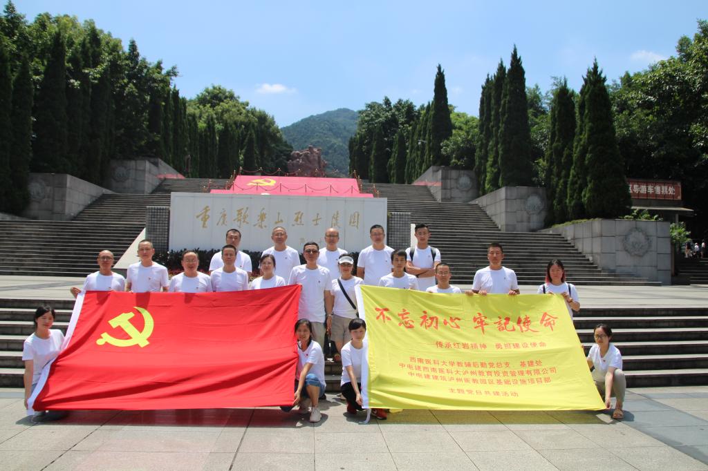 2019年7月下旬,经教辅后勤党总支审议、学校纪委审查、党委组织部审批同意,基建处党支部(教辅后勤第6支部)与中电建建筑泸州医教园区基础设施项目部党支部赴重庆开展了一期“不忘初心、牢记使命”主题教育共建活动,本次活动专题为“传承红岩精神,勇担建设使命”,活动还邀请了教辅后勤党总支、中电建beat365官方网站泸州教育投资管理有限公司及部分党外干部参加。