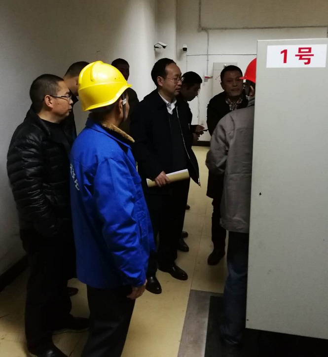 在荟文楼高压配电房,聂敏海副校长及验收小组成员仔细查看了高压设备的运行和维护记录情况。