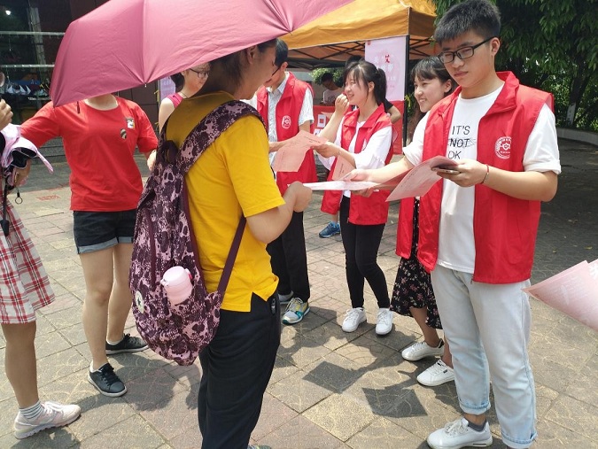 本次活动的摆点宣传工作在beat365官方网站桂香苑展开,鲜亮醒目的横幅,声音洪亮的音响,身着制服的志愿者是此次宣传活动的主力军。帐篷下的志愿者们声情并茂地念着宣传稿,分发宣传单的志愿者桂香苑门口热情地为同学们递上宣传单并热心解释详细活动内容,大家各司其职,有条不紊。最终,在志愿者的积极工作下,在同学们的热情参与下,本次宣传活动发放宣传单400余份,取得了较好的宣传效果。