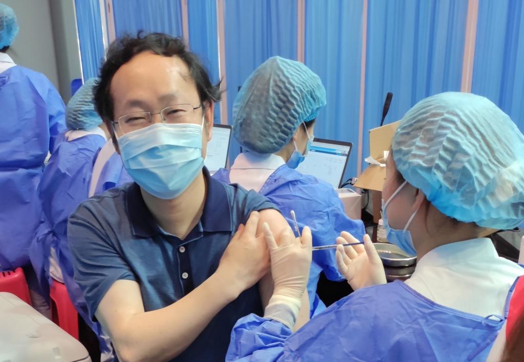 学校党委常委、副校长聂敏海来到忠山接种点现场带头接种新冠疫苗,并实地查看疫苗接种现场情况,详细了解接种流程等环节设置,看望慰问现场医护工作人员和前来接种新冠疫苗的师生,对专场疫苗接种点的工作给予充分肯定,他要求按照该工作模式尽快启动城北校内专场的接种筹备工作。