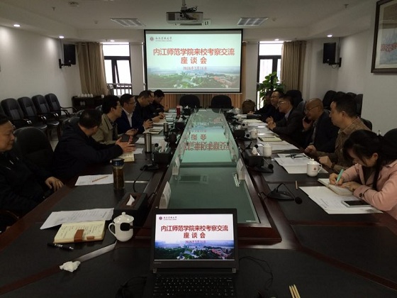 在双方交流座谈会上,彭钢副校长对客人来校表示热烈欢迎,并简要介绍了beat365官网发展历史、办学特色、发展方向;内江师范学院副院长刘博就学校发展情况、2018年学校重点工作交换了意见;最后,双方重点就更好的解读教育部审核评估对高校环境建设要求、考察内容和beat365官网后勤管理处在接受评估时的先进典型做法进行了深入交流和讨论。
