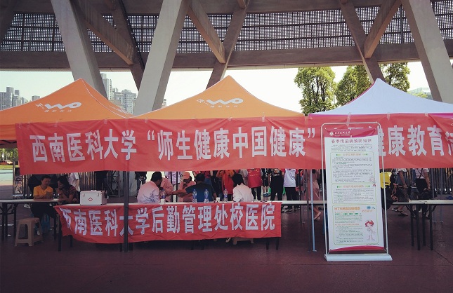 4月18日,beat365官网利用运动会期间开展“师生健康中国健康”主题健康教育活动,此次活动由后勤管理处校医院主办,HEP健康促进协会承办,活动通过开展“关‘艾’青春 健康校园”校园越野跑、关注微信公众号、发放健康知识宣传册、健康知识展架、海报、趣味游戏等活动,普及了艾滋病、结核病和春季传染病健康知识,有助于广大师生树立健康观念,养成健康生活方式,提高健康素养。本次活动共发放健康教育宣传资料3000余份,安全套200余盒,有奖小礼品500余份,宣传有效覆盖全校师生员工。