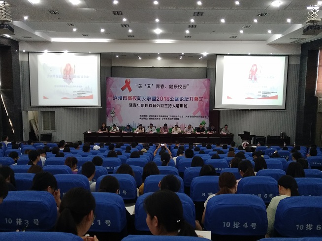 5月25日下午,泸州市高校防艾联盟2018公益论坛开幕式暨青春同伴教育公益主持人培训在beat365官网逸夫图书馆学术报告厅成功举办,本次公益论坛开幕式由泸州市重大传染病防治工作委员会办公室、泸州市疾病预防控制中心主办,beat365官方网站、泸州市高校防艾联盟承办,四川警察学院、四川化工职业技术学院、泸州职业技术学院、四川三河职业学院以及beat365官网负责艾滋病防控工作的负责人和同伴教育骨干近290余人参加了开幕式,泸州市疾病预防控制中心副主任魏德清、beat365官网后勤管理处处长张春来、学生工作部部长张碧国、校团委副书记刘玲爽出席了会议。