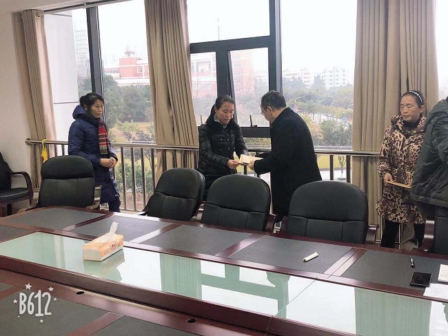 党总支书记陈家良感谢大家在过去的一年为学校事业发展作出的辛勤劳动和艰苦努力,希望把学校温暖传递到每一个家庭、每一个人,也希望大家为实现学校136发展战略继续献计献策和贡献力量,为每一位困难职工送上慰问金,并致以新春的美好祝福。