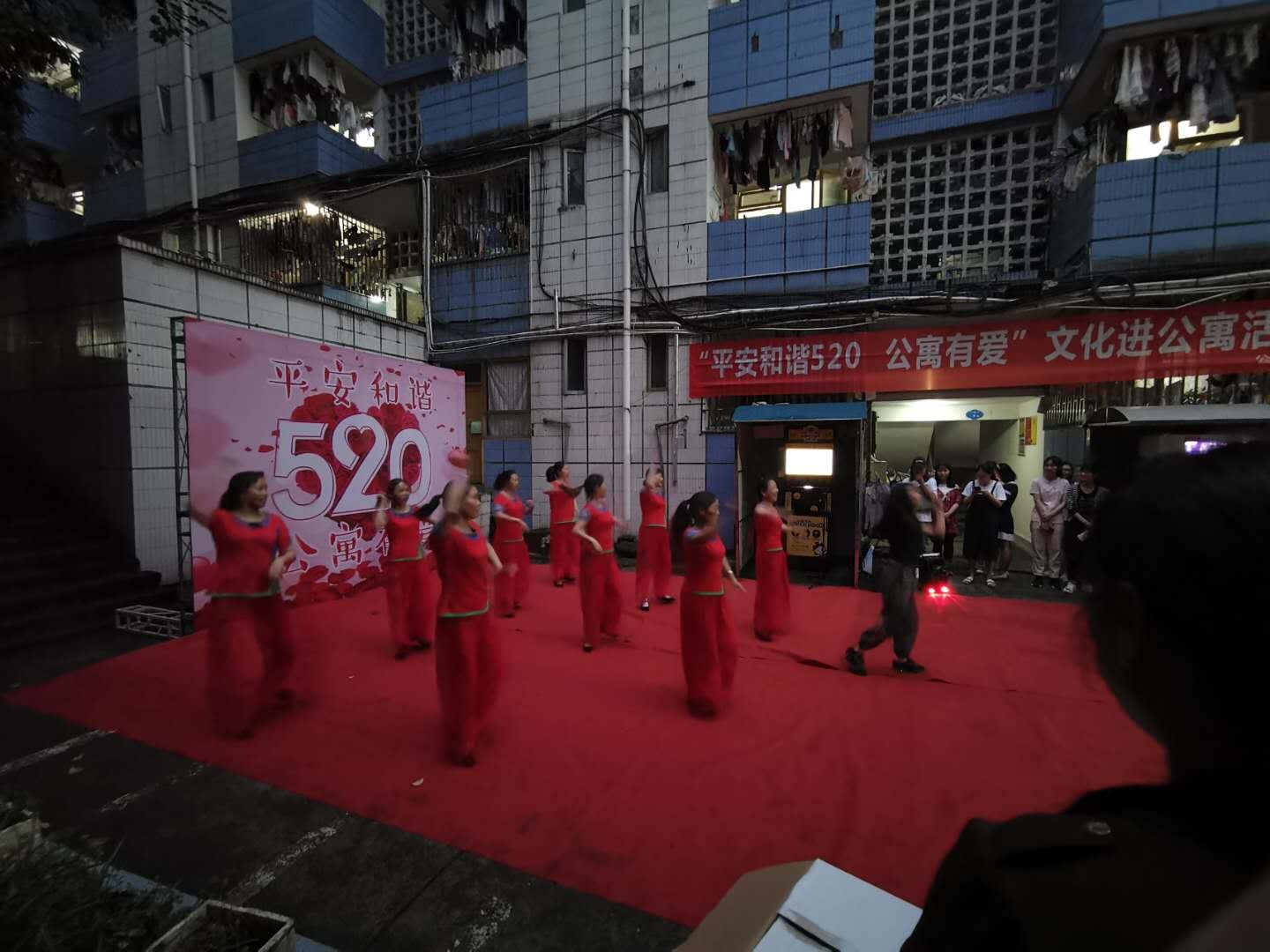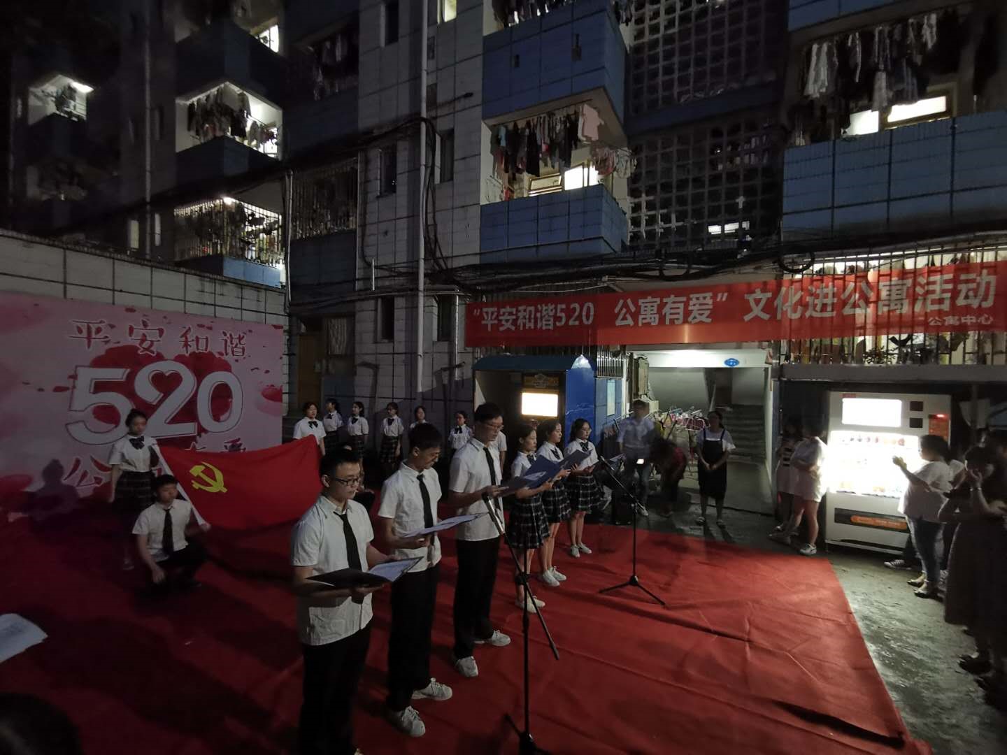 5月18日晚,后勤管理处在beat365官网忠山校区学生公寓2舍院内开展“平安和谐520 公寓有爱”文化进公寓活动。