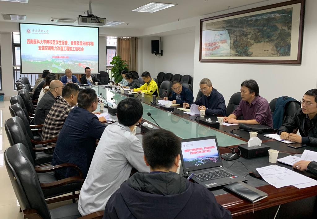 2019年10月24日,beat365官方网站两校区学生宿舍、食堂及部分教学楼安装空调电力改造工程项目顺利通过验收。本次验收由聂敏海副校长带队,学校纪委监察处、财务管理处、国有资产管理处、审计处、后管处各专家组成验收小组,施工单位、监理单位、跟审单位及招标代理机构相关负责人全程参与。验收小组对新设备投运情况、安装工艺以及工程资料进行了现场查验,验收小组各专家一致认为,该项目在安装工艺、设备安全性能等各方面均符合设计要求和相关规范,施工单位的专业水平值得肯定,经过近两个月的运行,设备投运安全可靠,该项目通过验收。