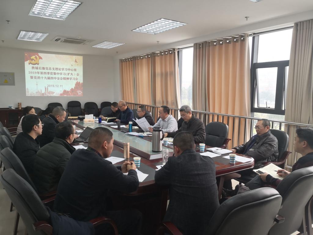 12月11日下午,教辅后勤党总支在城北校区德诚楼412会议室召开理论学习中心组2019年度第八次集中学习(扩大)会暨党的十九届四中全会精神学习会,总支委员、所属部门负责人及党支部书记参加会议,会议由党总支书记陈家良主持。