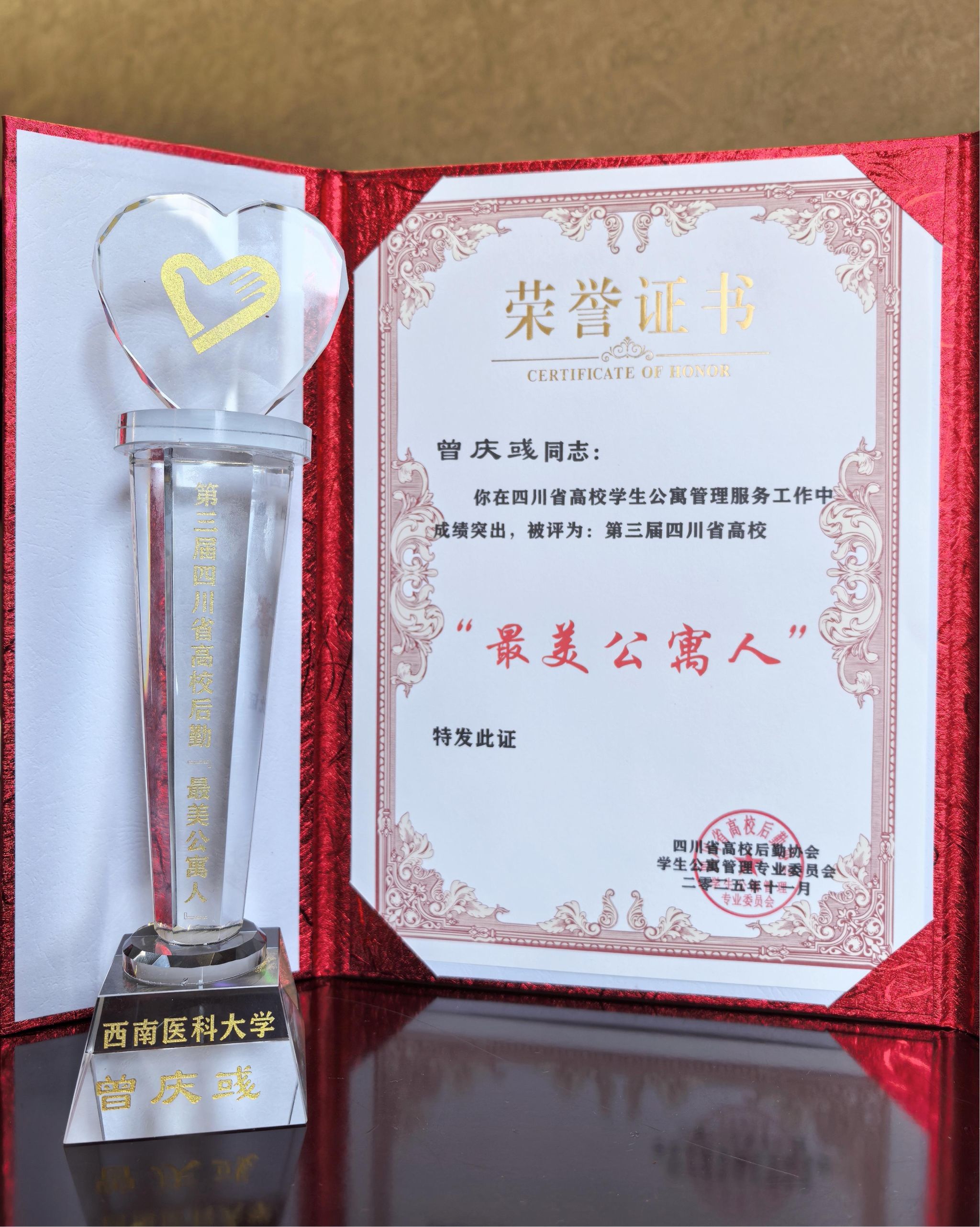 曾庆彧同志荣获四川省高校后勤协会“最美公寓人”称号