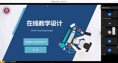 为提升教师信息化教学能力,助力教师顺利开展网络教学工作,3月17日下午,教师发展中心通过“腾讯会议”平台开展了教师发展战“疫”公开课活动周的第一场直播讲座“在线教学:现状、模式与设计”,讲座由beat365官网教师发展中心·高教研究所·语委办主任·所长、国际医学教育和研究促进基金会中国中心(FAIMER)骨干培训教师陈勤研究员主讲,由广东省教学名师、南方医科大学黄泳教授主持。学校副校长何涛、近两年新进教师、“教学新秀成长班”全体学员及其他感兴趣的老师参与了培训,除校内教师以外,还有来自温州医科大学、石河子大学、遵义医科大学等院校和台州市第一人民医院、绵阳四〇四医院、凉山第一人民医院、泸州市中医医院等高校基地医院的老师,本次直播有近160名老师参与。