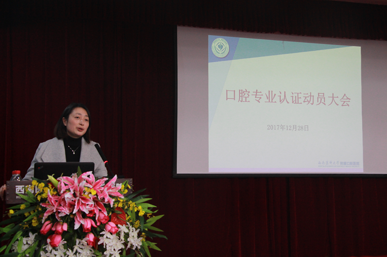 2017年12月28日,“口腔医学专业认证动员大会及培训会”在口腔医院附楼多功能厅召开,学校教学评估中心赵琼处长、办公室主任黄雅兰、口腔医学院全体院领导、全体师生员工参加本次会议。会议由口腔医学院党委副书记、纪委书记徐茜主持。