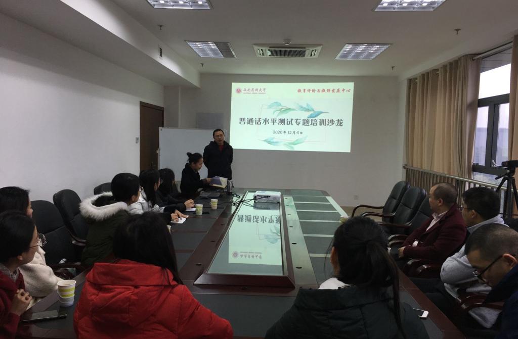 12月4日中午,学校在德诚楼912会议室开展普通话专题教师培训沙龙。此次培训沙龙由教育评价与教师发展中心主办,邀请到中西医结合学院、四川省普通话测试员谢晓东主讲。