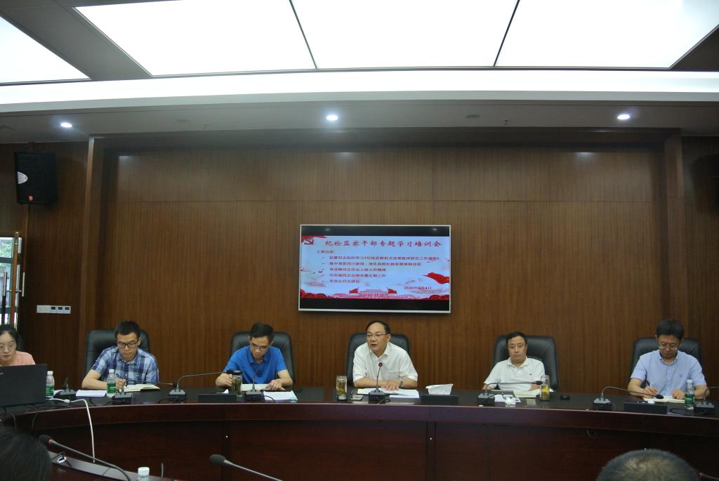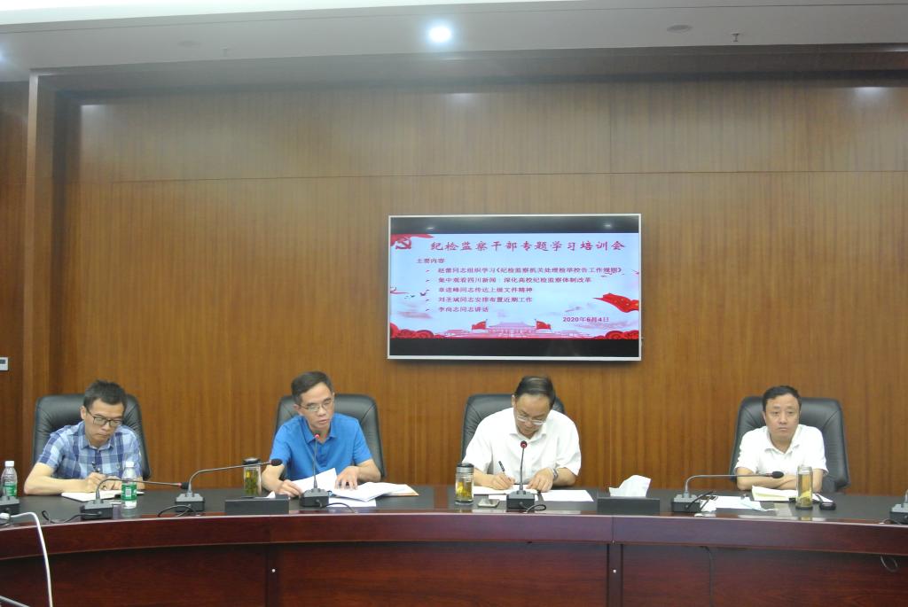 6月4日上午,省纪委监委驻beat365官方网站纪检监察组组长、学校党委副书记、纪委书记李尚志在德诚楼第一会议室主持召开全校纪检监察干部专题学习培训会。学校纪委委员、全体专职纪检监察干部,各党总支、机关党委、离退休党委、直属支部纪检委员以及各二级纪委委员参加了培训会。