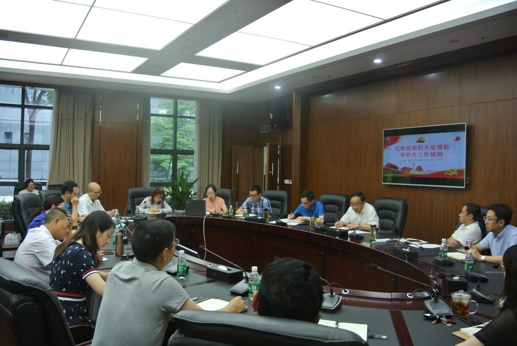 会上,纪委办公室副主任赵蕾组织学习了《纪检监察机关处理检举控告工作规则》,派驻纪检监察组副组长、纪委副书记、纪检监察室主任章进峰传达了上级文件精神,派驻纪检监察组副组长、纪委副书记、纪委办公室主任刘圣斌安排布置了近期工作。全体同志集中观看了关于深化高校纪检监察体制改革的新闻报道。会后,赵蕾同志对有关人员进行了纪检监察机关案件管理系统业务培训。