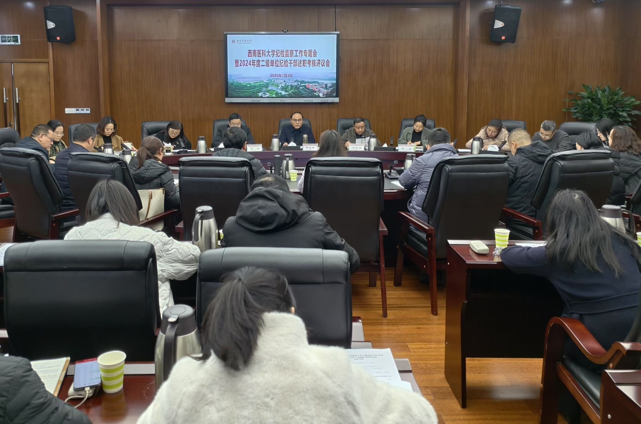 1月3日下午,纪检监察工作专题会暨2024年度二级单位纪检干部述职考核评议会在城北校区一会议室召开。会议由驻校纪检监察组组长,校党委副书记、纪委书记张永红主持。