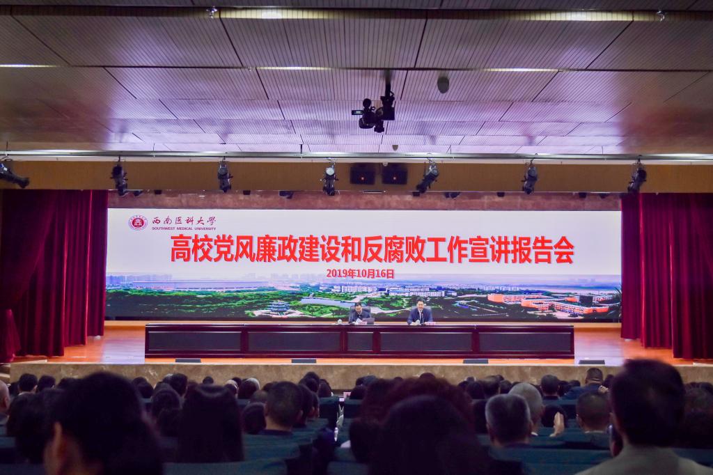 10月16日,根据四川省纪委监委关于加强省属高校党风廉政建设的统一安排部署,四川省纪委常委刘光辉同志来校作高校党风廉政建设和反腐败工作宣讲报告会。泸州市纪委监委领导班子成员;beat365官方网站全体校领导和各级党员干部;四川警察学院、泸州职业技术学院、四川化工职业技术学院校级领导和有关人员共800人听取了报告。报告会由学校党委书记廖斌主持。