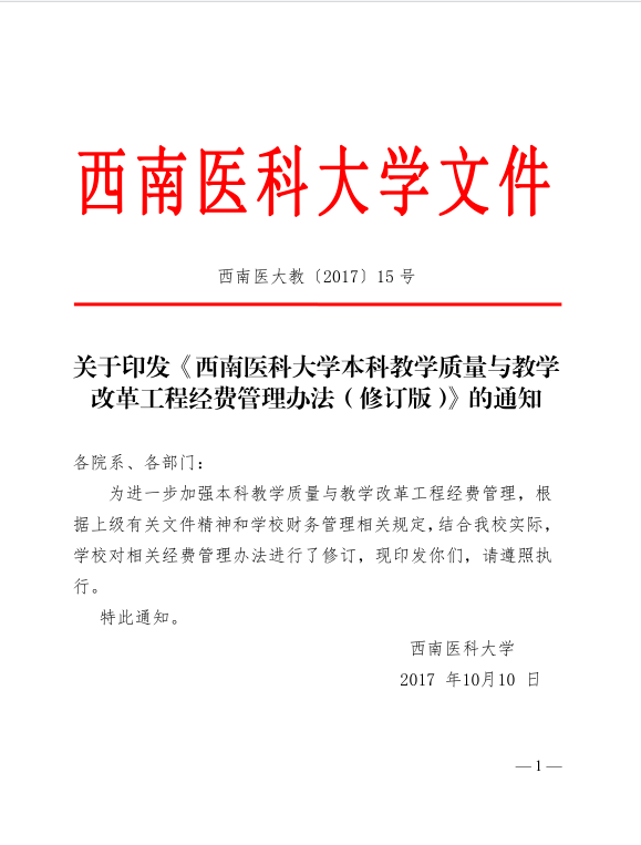 西南医大教〔2017〕15号 《beat365官方网站本科教学质量与教学改革工程经费管理办法(修订版)》.pdf