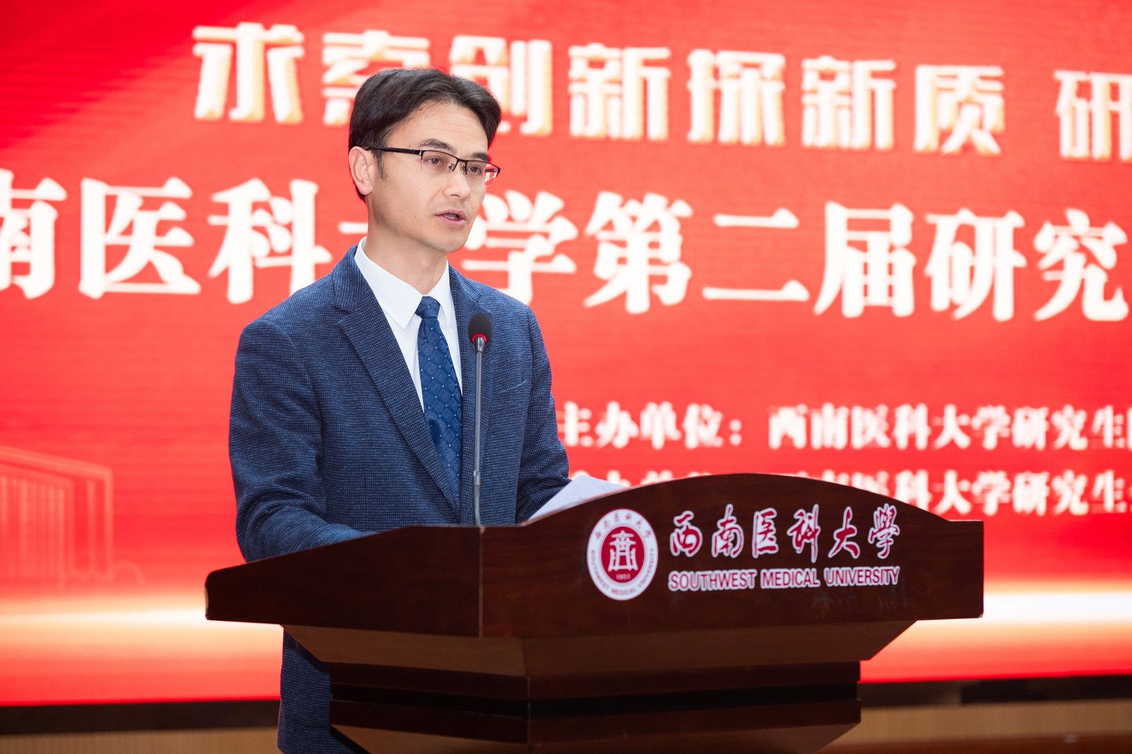 代荣阳致辞。他表示,举办研究生学术文化节顺应时代发展需求,承接学校战略规划,对提升研究生教育培养质量具有重要意义。他对全校研究生提出了三点要求与希望:一是不忘初心,行稳致远,要坚定理想信念,心怀“国之大者”,把个人的追求和国家的发展紧密结合;二要学以致用,砥砺奋进,练就过硬本领,把学术理论与专业实践相结合,既脚踏实地,又仰望星空,做中国特色社会主义事业的合格建设者和可靠接班人;三是勇于创新,再攀高峰,探索研究新方向、学习新技术、掌握新本领,推动新发展,用一步一个脚印的踏实努力为攻克事业难题铺路架桥,为实现高质量发展涉险滩、闯难关、攀高峰。
