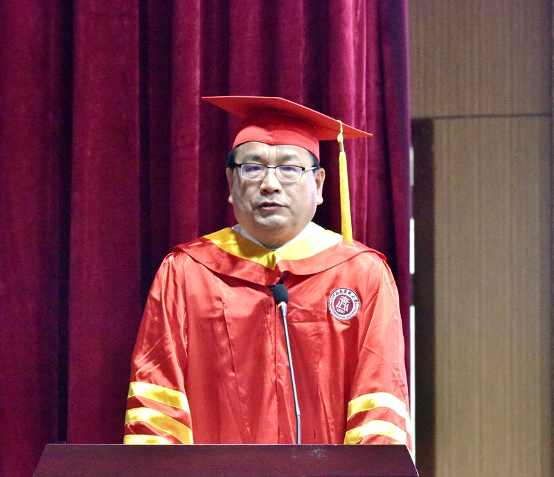 学校学位评定委员会主席、主持行政全面工作副校长张春祥教授以“心怀梦想 砥砺前行 不负时代 追求卓越”为题致辞,结合自己求学及工作经历向学生提出四点嘱托。一要心怀梦想、志存高远。心怀梦想,人生就有希望;志存高远,才能驱动自己不断前行。二是要脚踏实地,砥砺前行。认真规划阶段性目标,付诸行动,并持之以恒。干一行,爱一行;学会做人、认真做事;做到心底无私,甚至要有一种 “吃亏”是福的精神。三是要不负时代、勇于担当。抓住机遇,不负生物医学快速发展的大时代;不负国家高速发展的新时代,勇于承担民族复兴、书写历史的重托,担负起伟大祖国引领世界的重任。四是要终身学习、追求卓越。学海无涯,卓越无界,保持终身学习的良好习惯,活到老,学到老,不断追求卓越,积极努力,不辜负青春韶华。