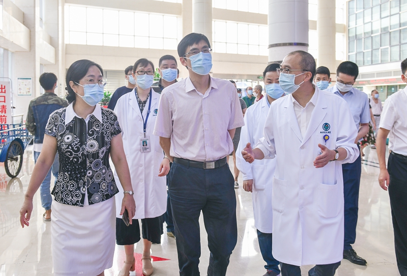 7月23日上午,省委“两新”组织工委专职副书记尹显耀、市委组织部副部长张国华一行到附属医院开展公立医院党建工作专题调研。学校党委副书记兼工会主席刘毅、组织部部长冯天明陪同调研。附属医院党委书记惠曦、党委副书记兼纪委书记曾宪利、副院长徐勇、江涌等陪同。