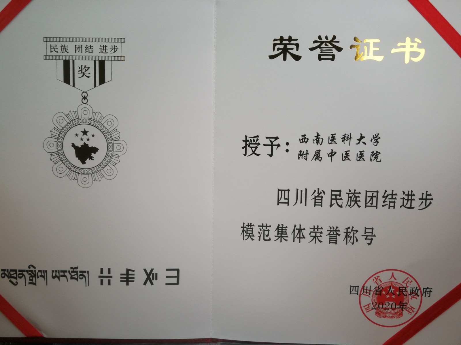 近日,四川省人民政府发布了《关于表彰四川省民族团结进步模范集体和模范个人的决定》,beat365官方网站附属中医医院荣获“四川省民族团结进步模范集体”荣誉称号。