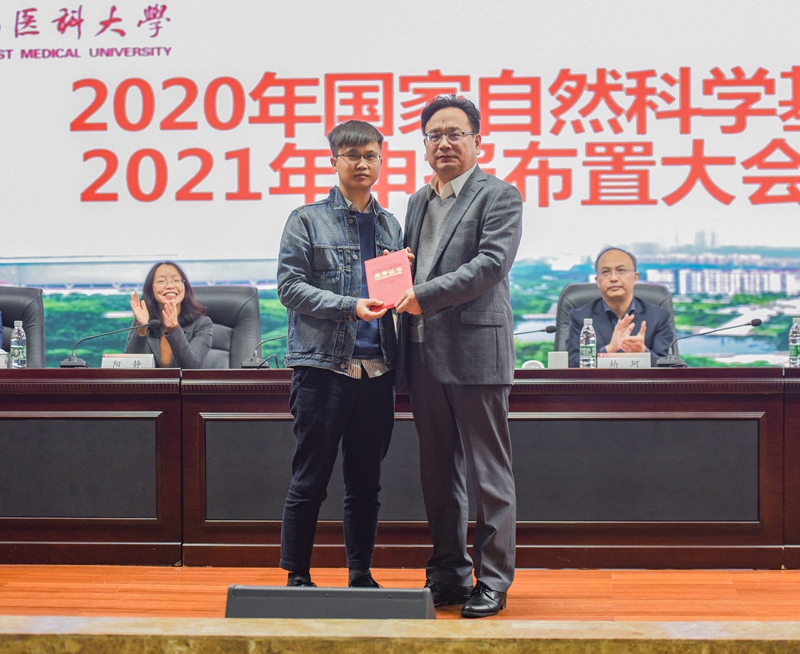 张春祥为基础医学院2020年国家自然科学基金获得者曾毅颁发了荣誉证书。与会人员对基础医学院科研工作提出了相关意见与建议。