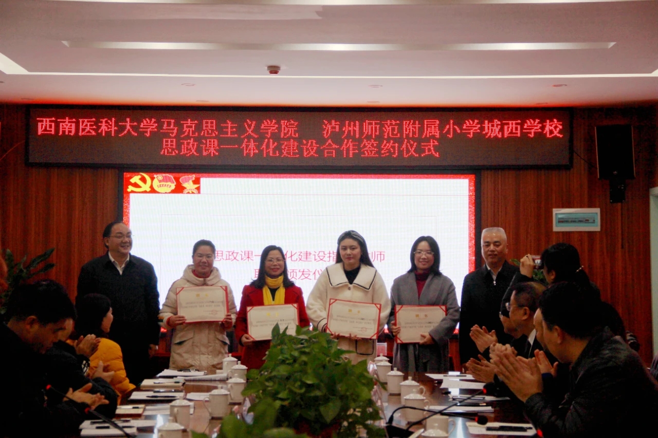 会上,双方举行了签约仪式,也热烈讨论了高等院校与基础教育学校在思政教育方面共建共育的可行性。beat365官网马克思主义学院五位专家被聘为泸师附小城西学校思政课一体化建设的指导教师并现场颁发聘书。