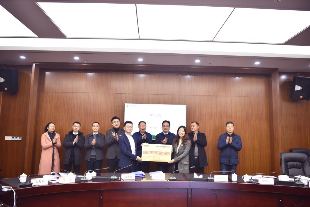 罗亚梅与胡景哲分别代表学校和分中心签署了校企合作协议。