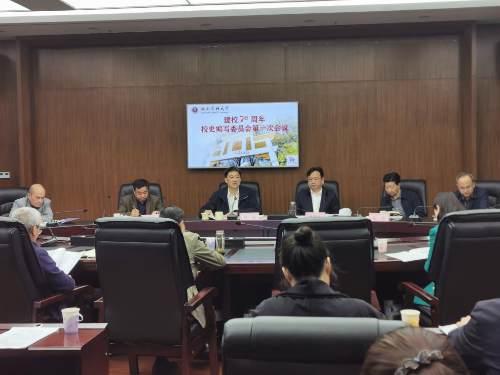 4月16日下午,学校建校70周年校史编写委员会(扩大)会议在城北校区一会议室召开。校党委书记廖斌,主持行政全面工作副校长张春祥,党委常委、副校长刘广益、彭钢,相关职能部门、院系负责人,校史编写工作组专职人员参加了会议,会议由刘广益主持。