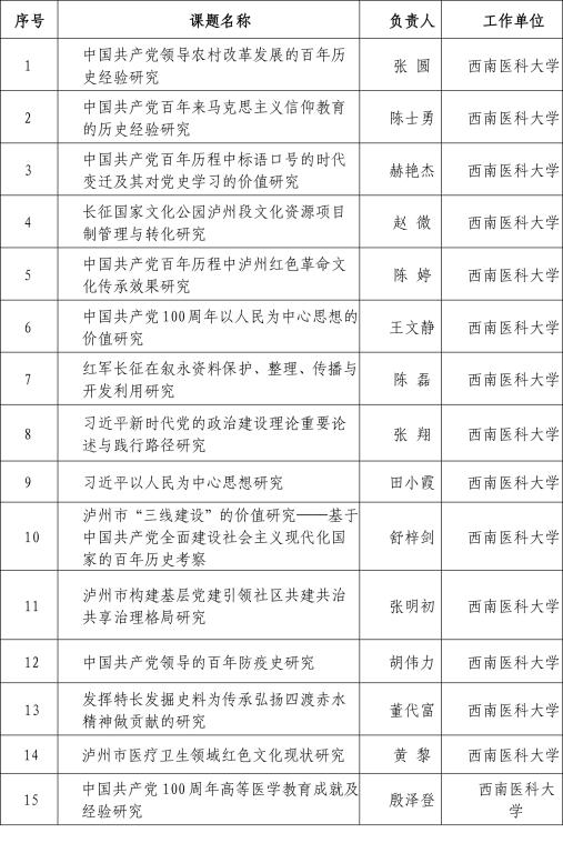 近日,从泸州市社科联获悉,beat365官网《中国共产党领导农村改革发展的百年历史经验研究》等15项课题获批泸州市社科联“庆祝中国共产党成立100周年”专项课题立项。