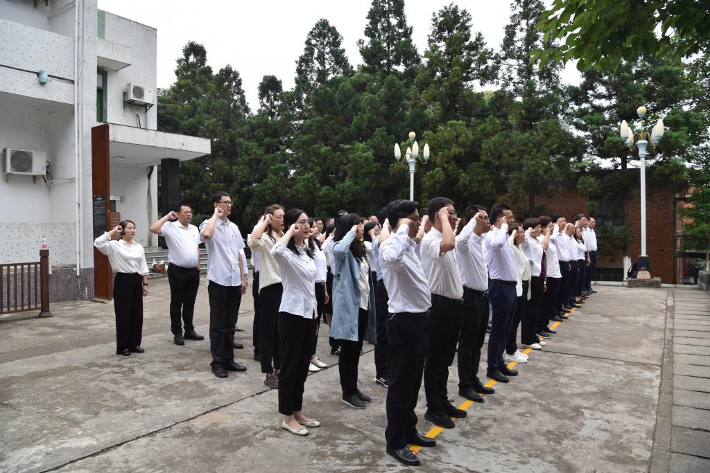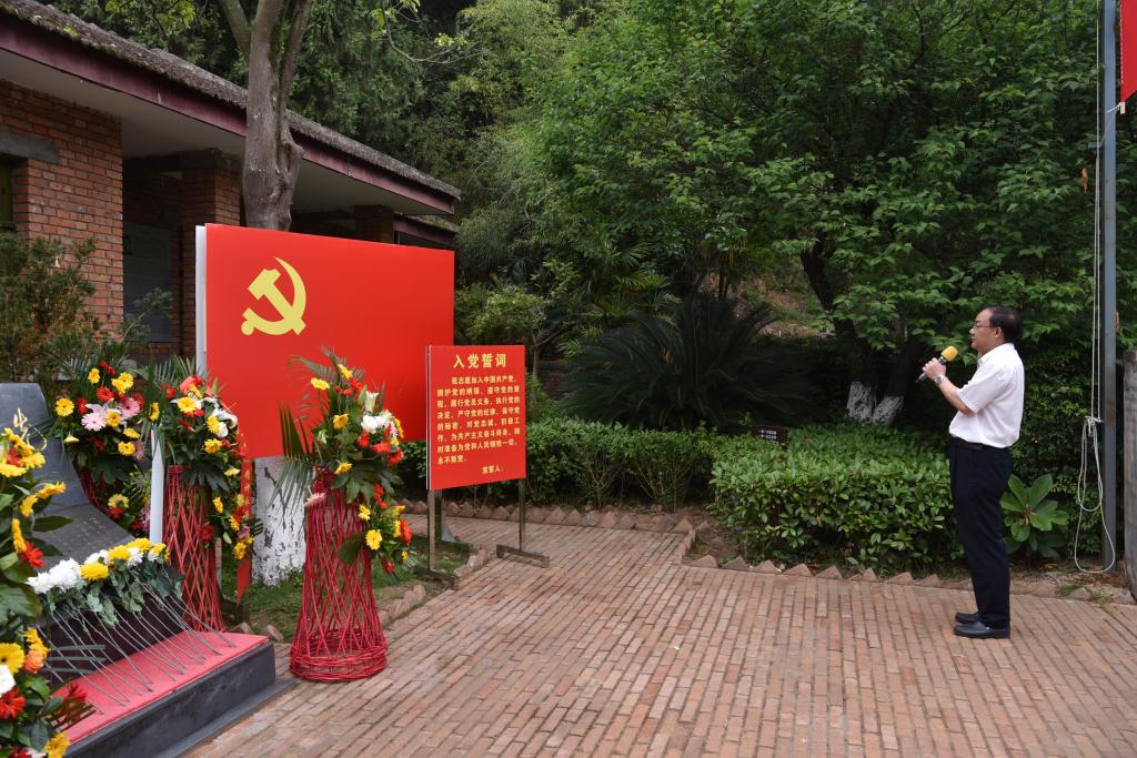 “我志愿加入中国共产党,拥护党的纲领,遵守党的章程……”在邓稼先旧居前,面对鲜红的党旗,学校党委副书记、纪委书记李尚志带领大家重温入党誓词,全体党员举起右手,紧握成拳,铿锵有力的宣誓声让所有人都深受感染、备受感动。