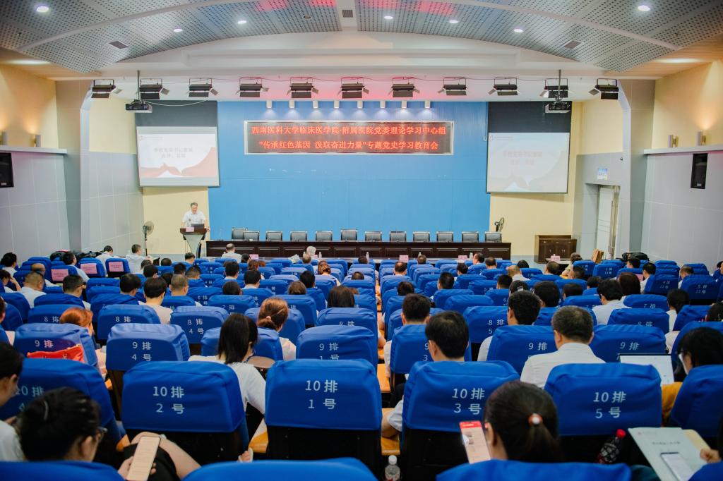 范生尧教授以“学党史 忆初心 永远跟党走”为题,讲述了学校和医院从建立之日起就根植的红色基因,讲述了一代代西南医大人接续奋斗和一件件具有里程碑意义的重大事件,并祝愿学校和医院在新的征途中举棹扬帆、勇立潮头,奋力开创beat365官方网站和附属医院更加美好的明天。