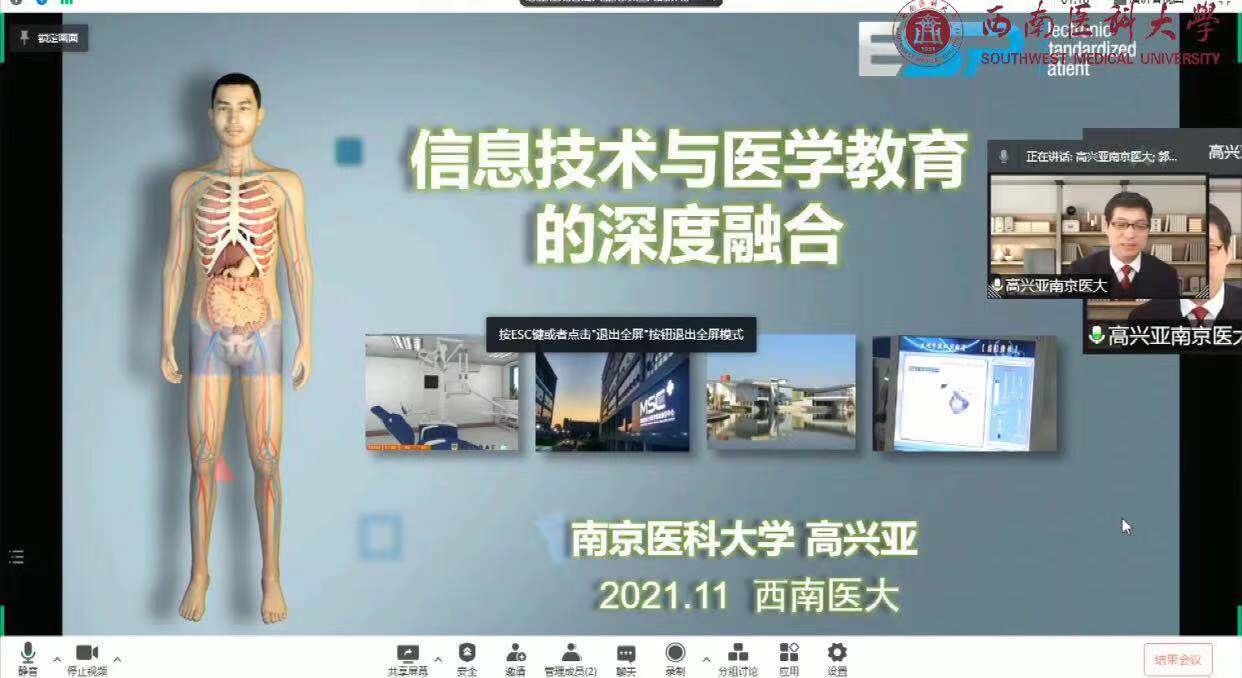 南京医科大学教务处处长高兴亚教授作题为《信息技术与医学教育的深度融合》的主题报告。他从“信息化入侵”“医学教育信息化进程”“教育信息化发展现状”和“教育信息化未来”四个方面系统阐述了医学教育信息化的由来、问题和发展方向,以“共建共享、深度融合、流程再造”全面总结和深刻展望医学教育信息化工作,并详细介绍了国家虚拟仿真实验教学项目的建设原则、建设要求、建设内容及成功案例。