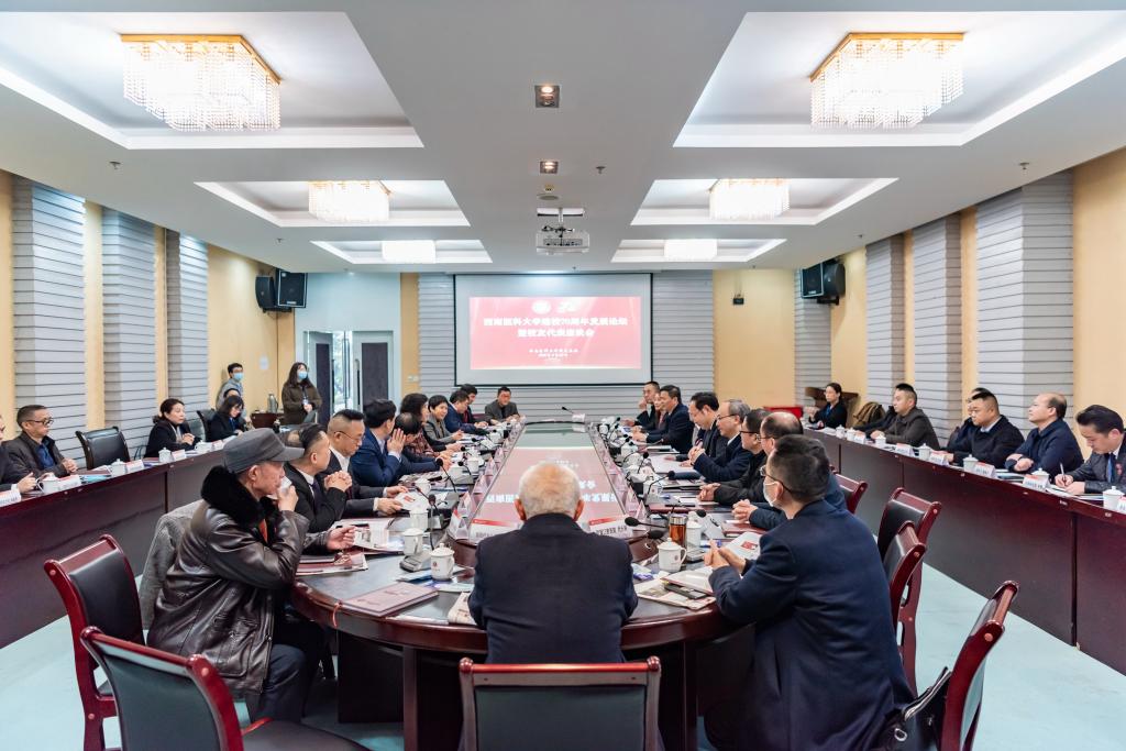 座谈会上,与会校友代表积极发言,纷纷表达对母校培养的感恩之情,对母校建校70年所取得的巨大成就感到欣喜与自豪,特别对母校获批成为博士学位授予单位(点)表示祝贺。同时,广大校友就学校如何加强“双一流”建设、师资队伍建设、高层次人才培养引进、科学研究、特色学科发展、校园文化建设、乡村振兴及对外合作等方面提出宝贵意见和建议。校友代表还一致希望学校加强校友会建设,创新各地方校友分会的互联机制,创建更多校友间交流平台,重视校友对母校发展的作用。大家纷纷表态,以后将一如既往地关心、关注和支持母校,愿为母校事业发展献计献力、添砖加瓦。