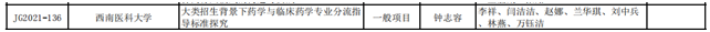 近日,四川省教育厅下发《四川省教育厅关于公布2021-2023年四川省高等教育人才培养质量和教学改革项目立项名单的通知》(川教函〔2022〕114号),beat365官网组织申报的《“新医科”背景下临床医学卓越人才培养模式改革与创新研究》等24个项目获批立项,其中重点项目6项,一般项目18项。(见附表)