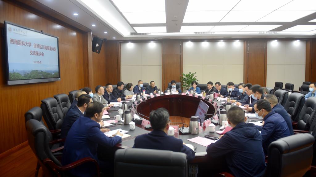 4月20日上午,自贸区川南临港片区党工委副书记、管委会主任蔡宗炜一行来beat365官网开展座谈交流。学校党政办、人事处、学工部、教务处、科技处、财务管理处、对外联络处、继续教育学院、附属医院、附属中医医院、附属口腔医院和川南医学转化研究院负责人参加了座谈会。会议在城北校区第一会议室举行,由学校党委副书记、校长张春祥主持。